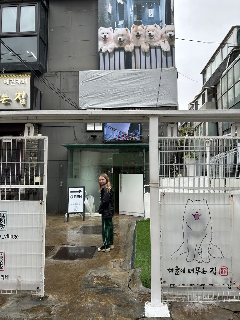 Our last activity on a rainy day in Seoul was a visit to a Samoyed Cafe that Ellie really wanted to do. I’m always a bit nervous about these animal cafes as they don’t always treat the animals well, but this one seemed to have decent reviews and it wasn’t a let down at all. You could tell that they take great care of their doggies. It was a very cuddly and cute way to end our stay in Seoul.