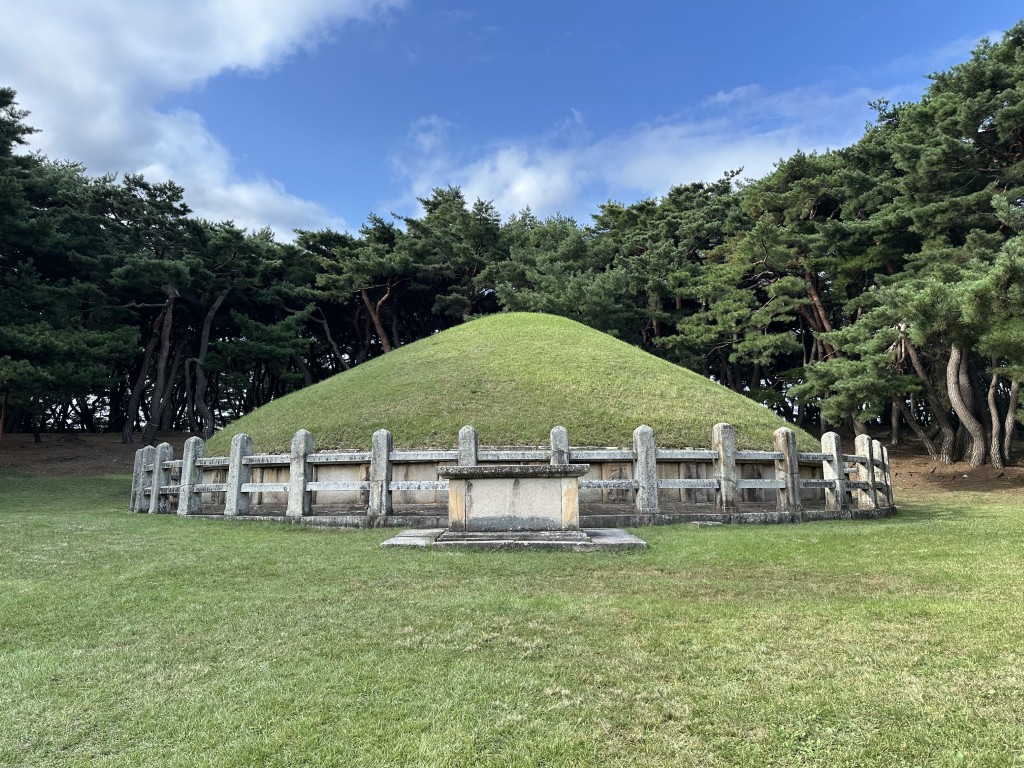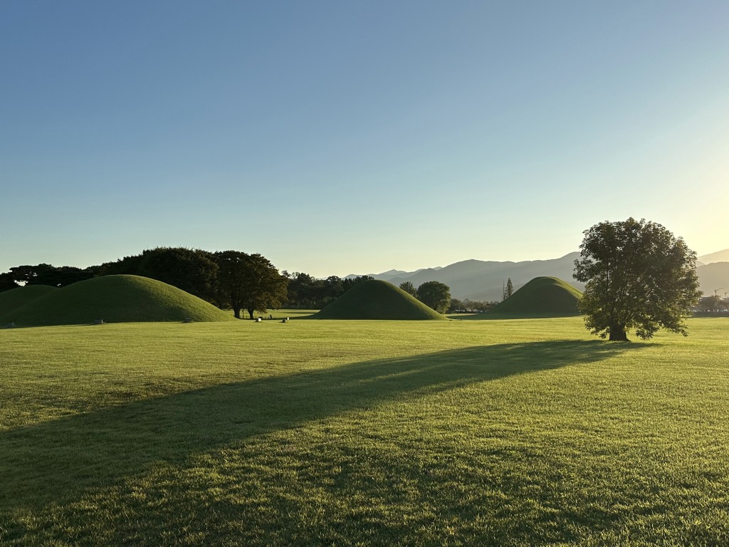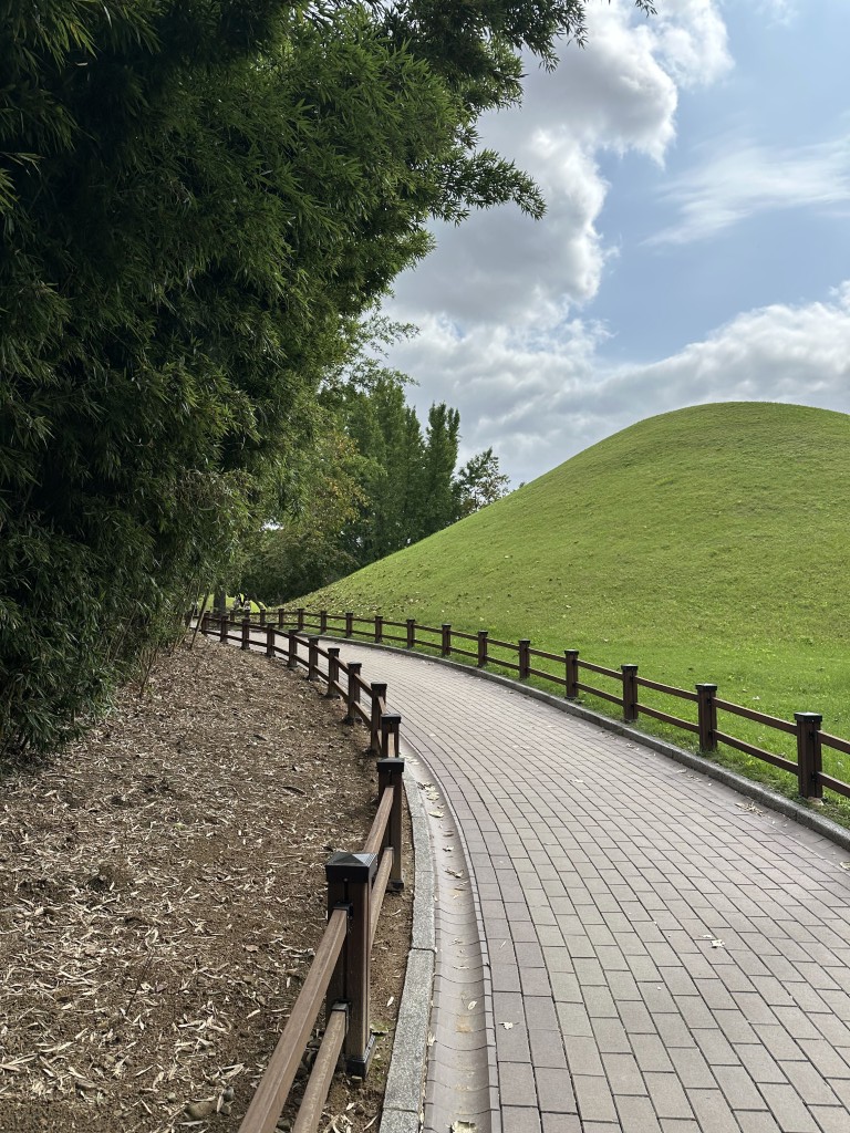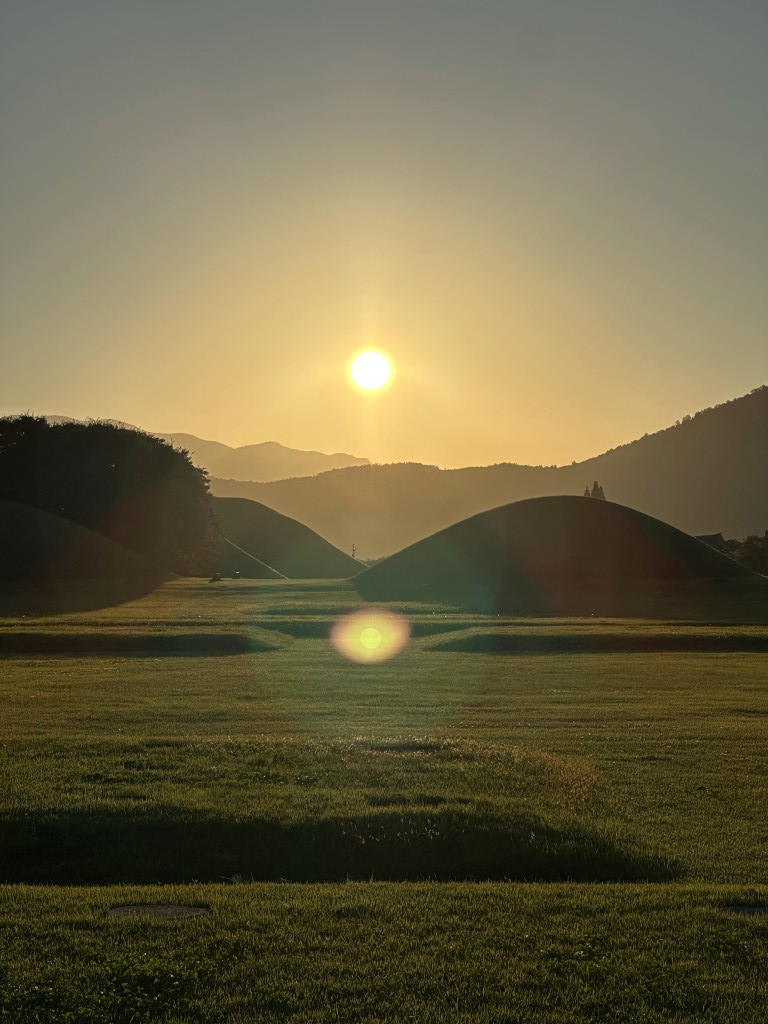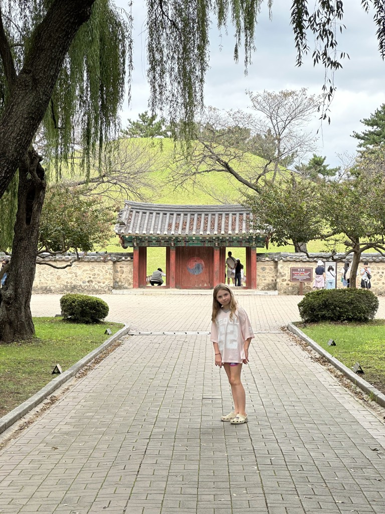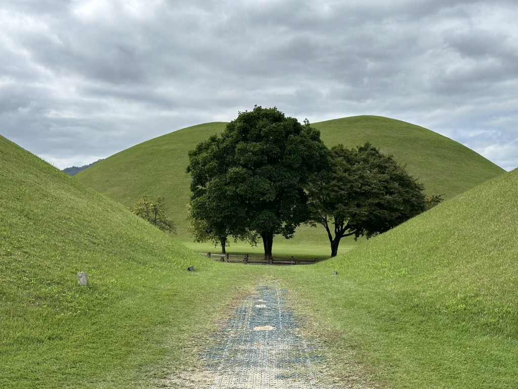 Our first place of interest was the Daereungwon Tomb Complex. Gyeongju was a capital of Silla, an ancient Korean kingdom that existed from 57 BC to 935 AD, and was the fourth largest city in the world at one point. Gyeongju may not have been so high on my list were it not for my friend Dawn’s visit her in the spring! The Silla elites (royals and nobles) were buried in these special tombs that were constructed from wood and stones, and covered in soil and grass, and now look like perfect hills.
