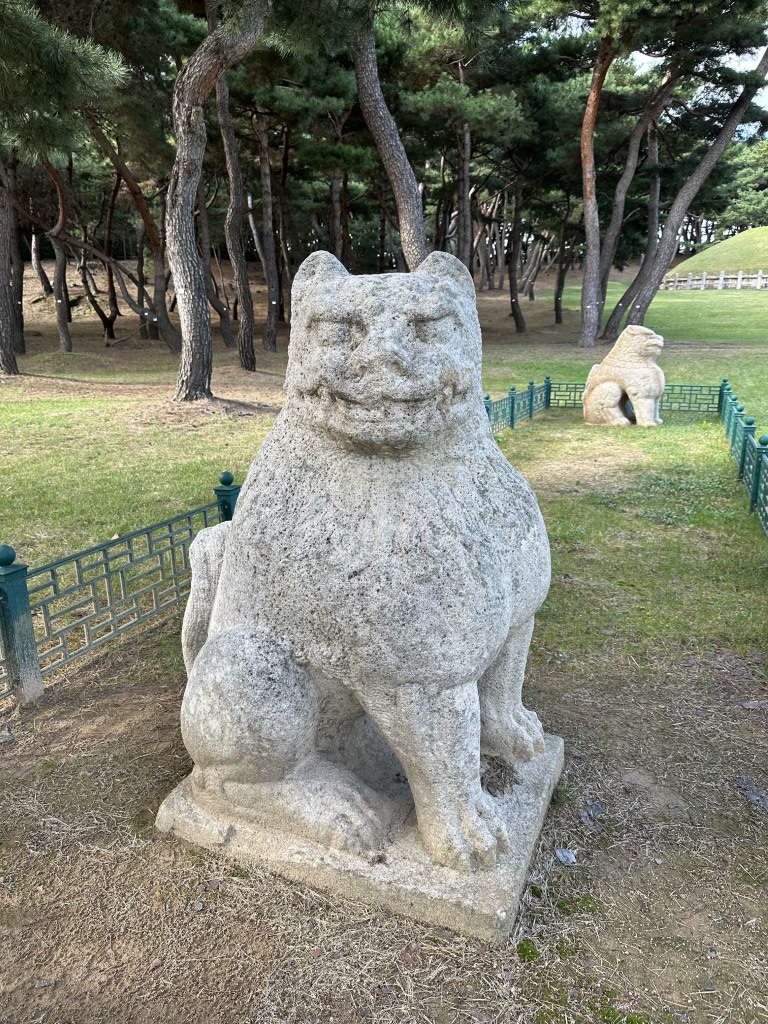 A tomb that caught my eye in one of the museum videos was Tomb of King Seongdeok, a bit out of town and guarded by some stone statues. We basically had the place to ourselves. But we discovered why, as the bus service can be spotty at times – we had to wait 40 minutes for the bus back to the city after our visit.