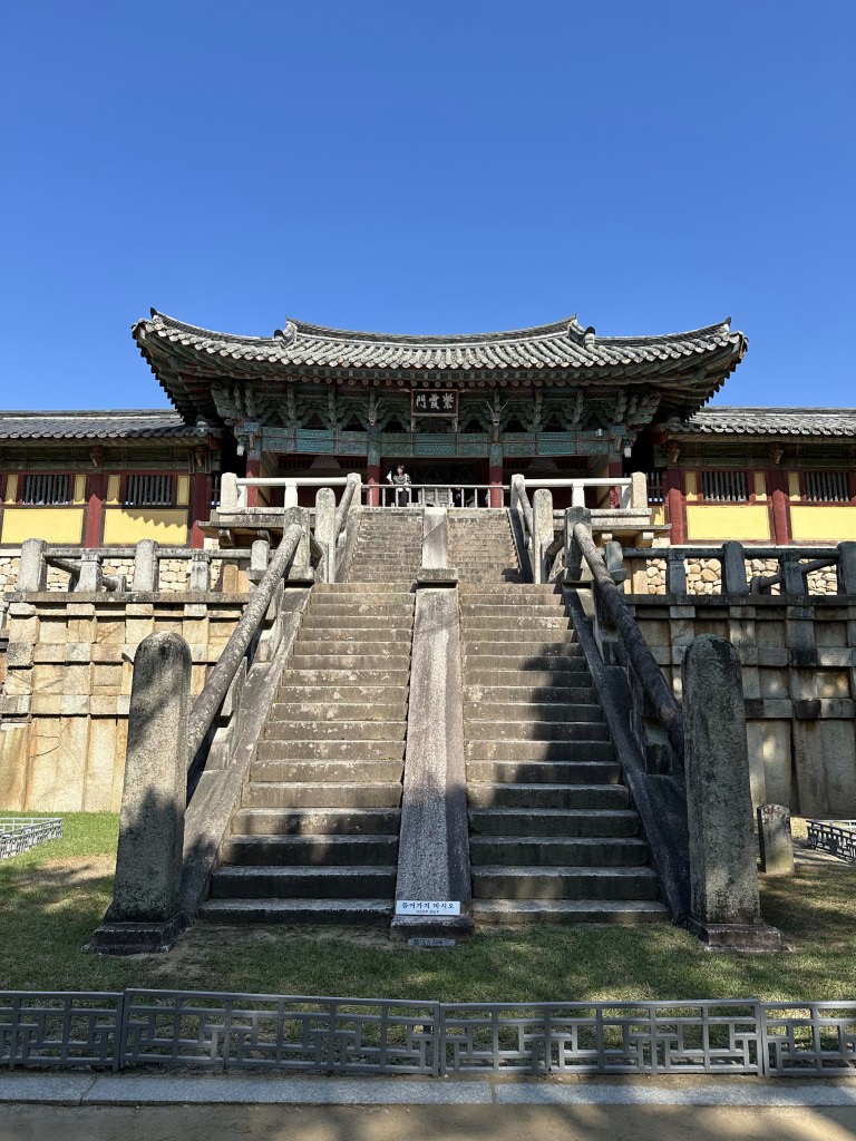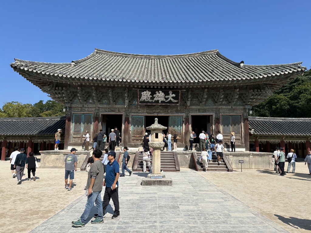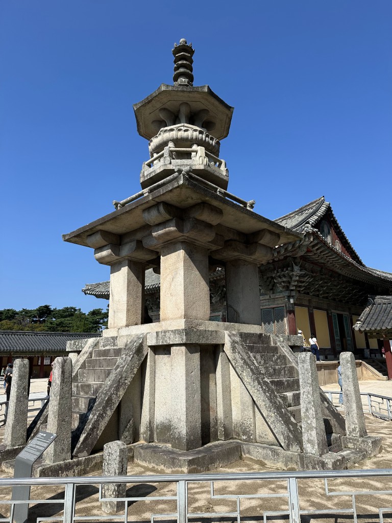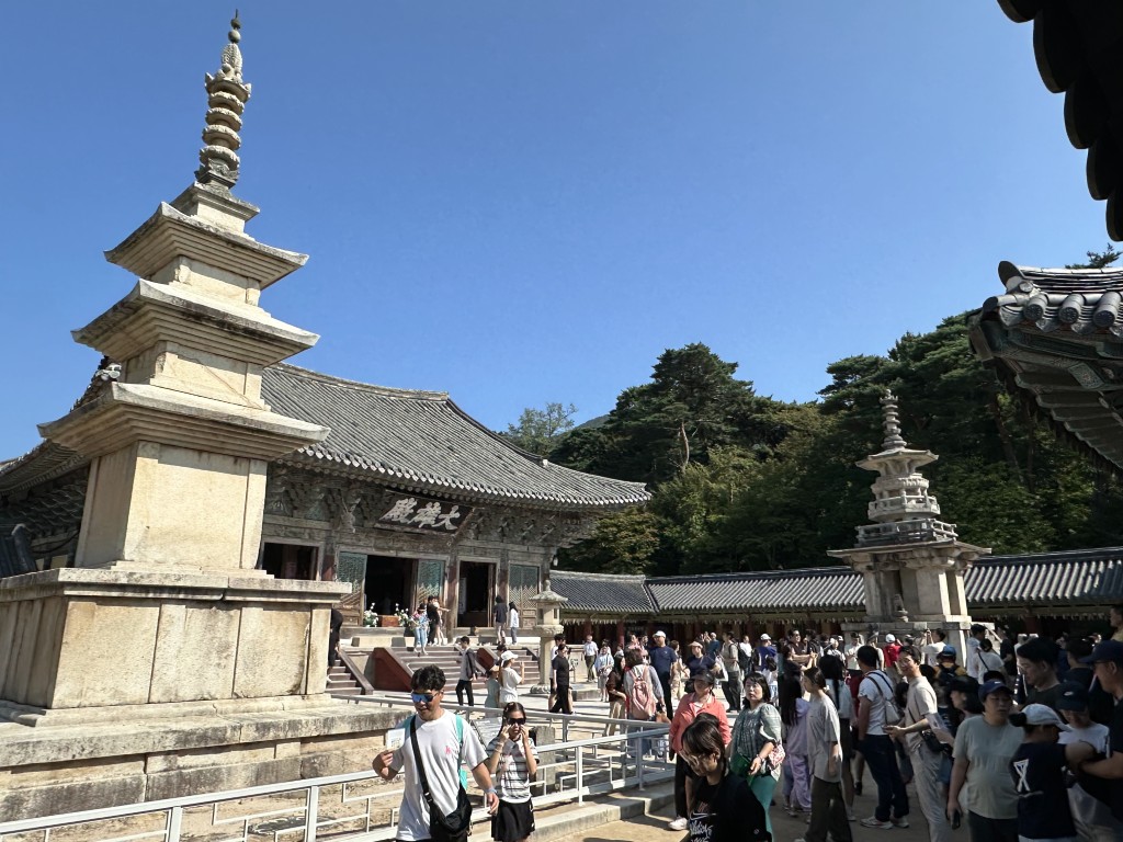Our final day in Gyeongju was a clear, very warm (30 degrees) early fall day, and we were out for almost all of it. First, we visited the 1250 year old Bulguksa Temple, a Buddhist temple complex in the mountains outside of town.