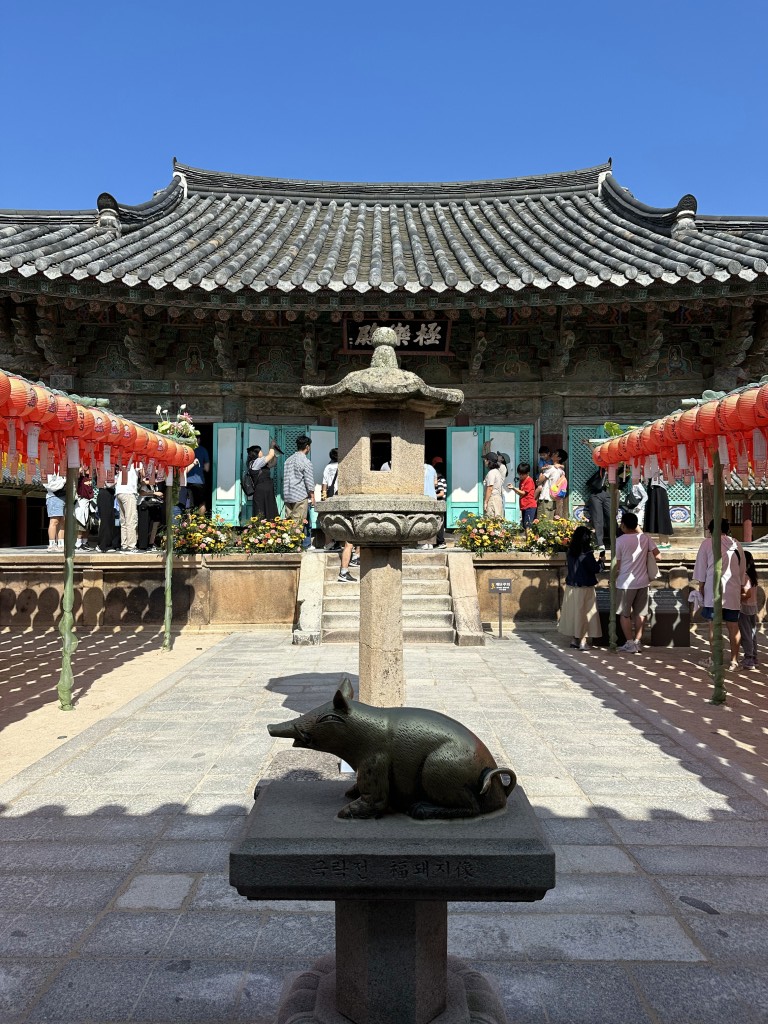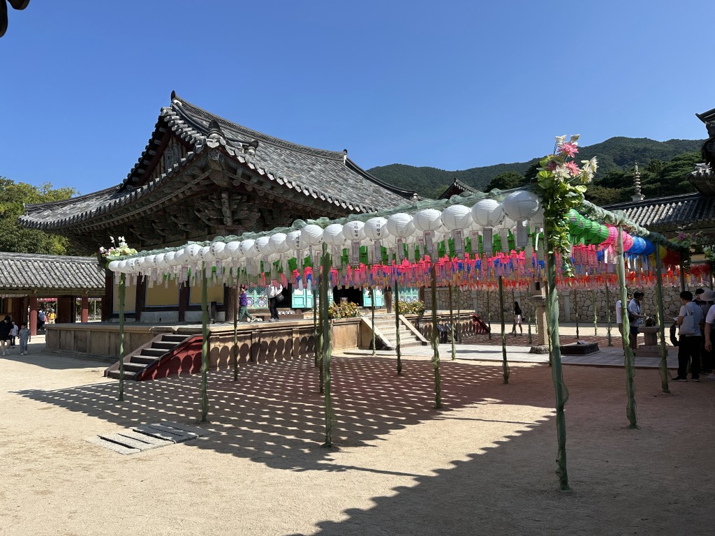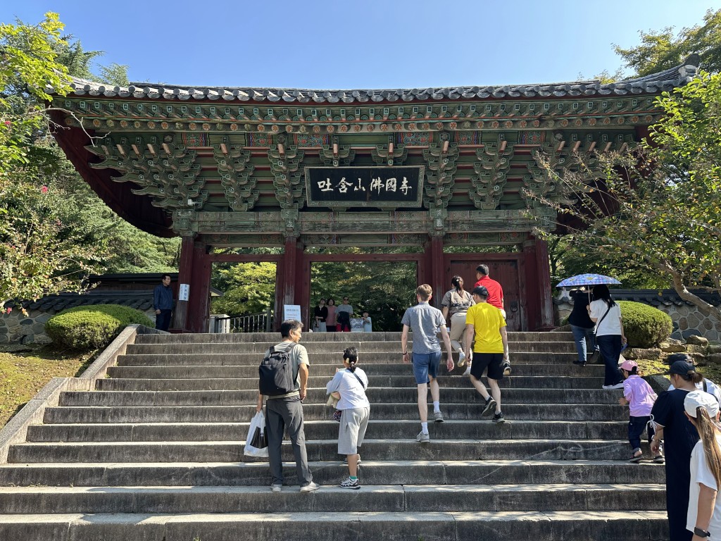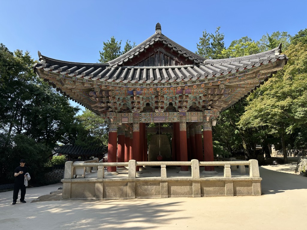 Our final day in Gyeongju was a clear, very warm (30 degrees) early fall day, and we were out for almost all of it. First, we visited the 1250 year old Bulguksa Temple, a Buddhist temple complex in the mountains outside of town.