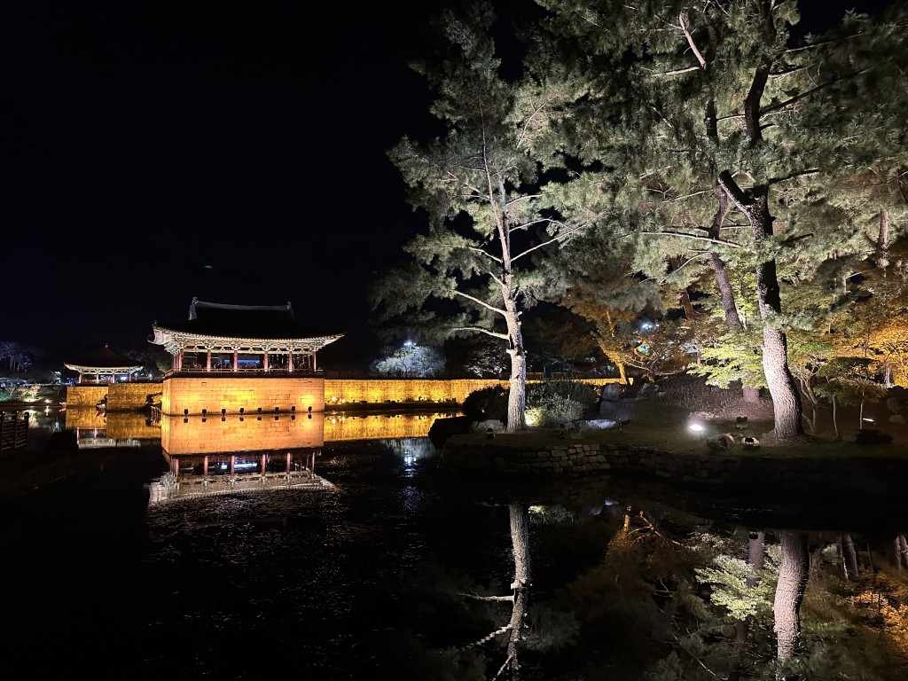 Many of Gyeongju’s historical sights and landmarks are beautifully illuminated after dark.