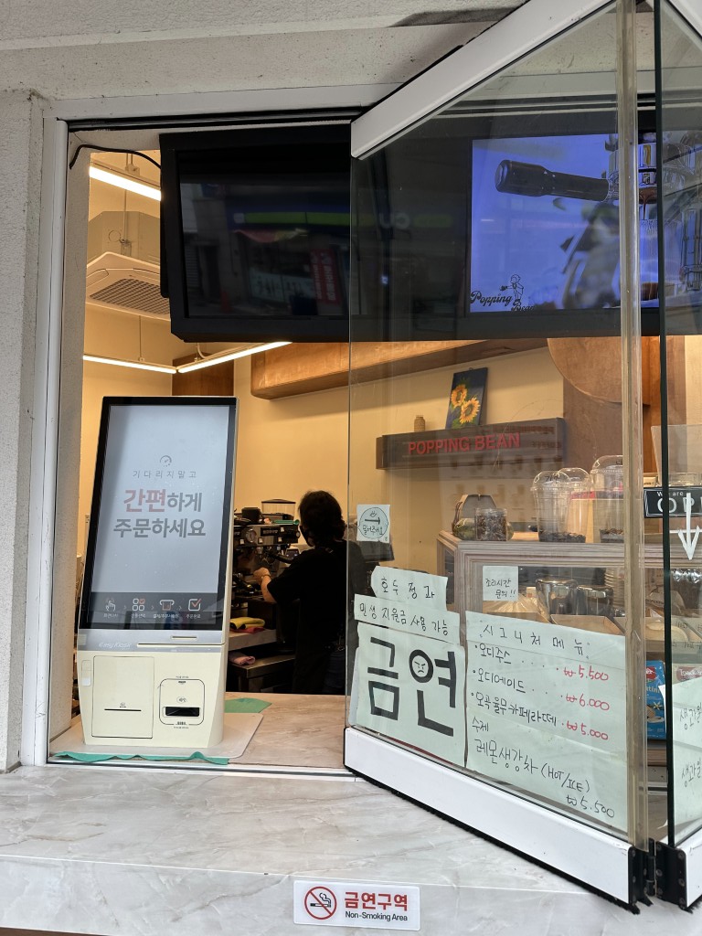 Another curious feature of Korea – I didn’t visit a single coffee shop where ordering was NOT from a kiosk. Even this one across the street from our hotel had a kiosk ordering system and I’m pretty sure it was the same person working there morning, noon, and night every day so it’s not like it was a chain.