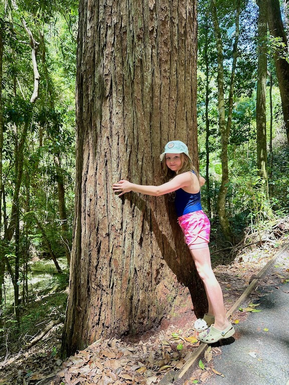 These massive trees – satinay – are only found on Fraser Island – and are an extremely valuable timber. Their characteristics made them ideal for marine piles at docks around the world.
