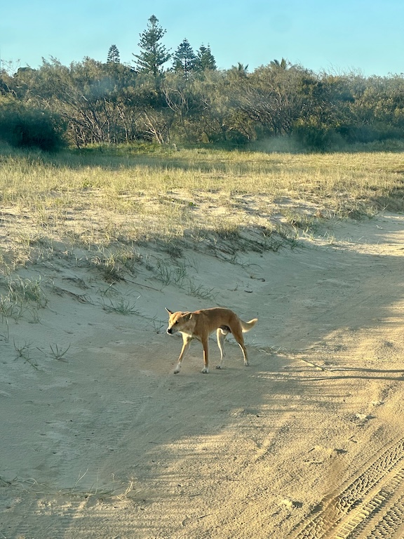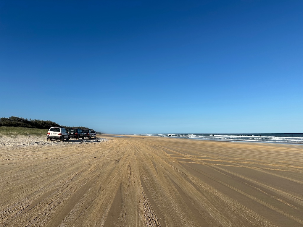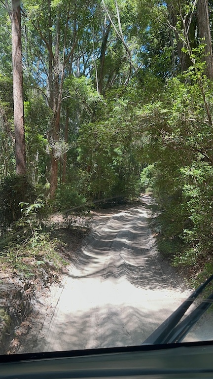 We trundled down the trail again, towards a lunch stop at the K’Gari Beach Resort on the east coast, just inland from the 75 mile beach, which runs the entire length of the island.
