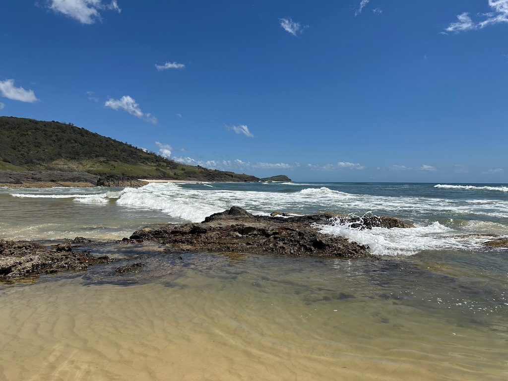 Today started out overcast as yesterday’s system was still clearing out, but we could already get some views of the lush hills with sand poking out underneath the trees. Fraser Island is made almost entirely of sand – it is literally a 123 km long continuous sand dune! This gives it some unique environments, not to mention amazing beach scenery.
