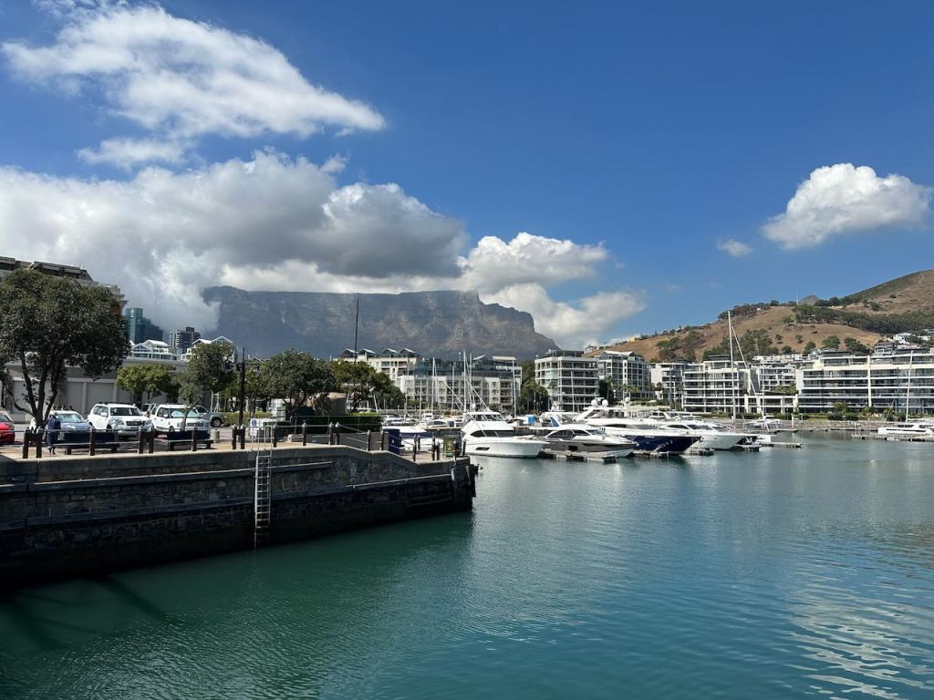 Our luggage didn’t make the very short transfer in Amsterdam, so my Mom and I walked over to the shopping centre in the V&A Waterfront after breakfast to pick up a few things. Everywhere you look in this area there are iconic views.