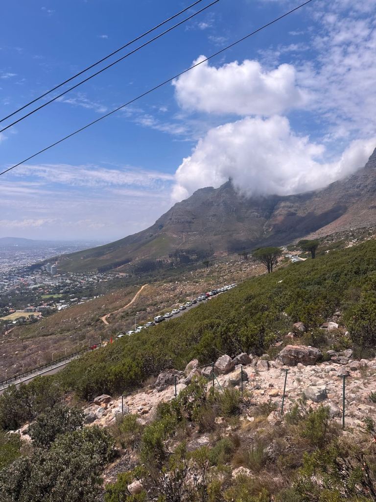Table Mountain was still mostly cloud free in the early afternoon , so we headed up to the Cableway. Almost no line being a weekday, so nice!