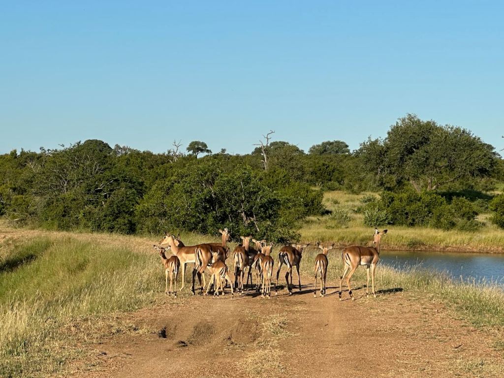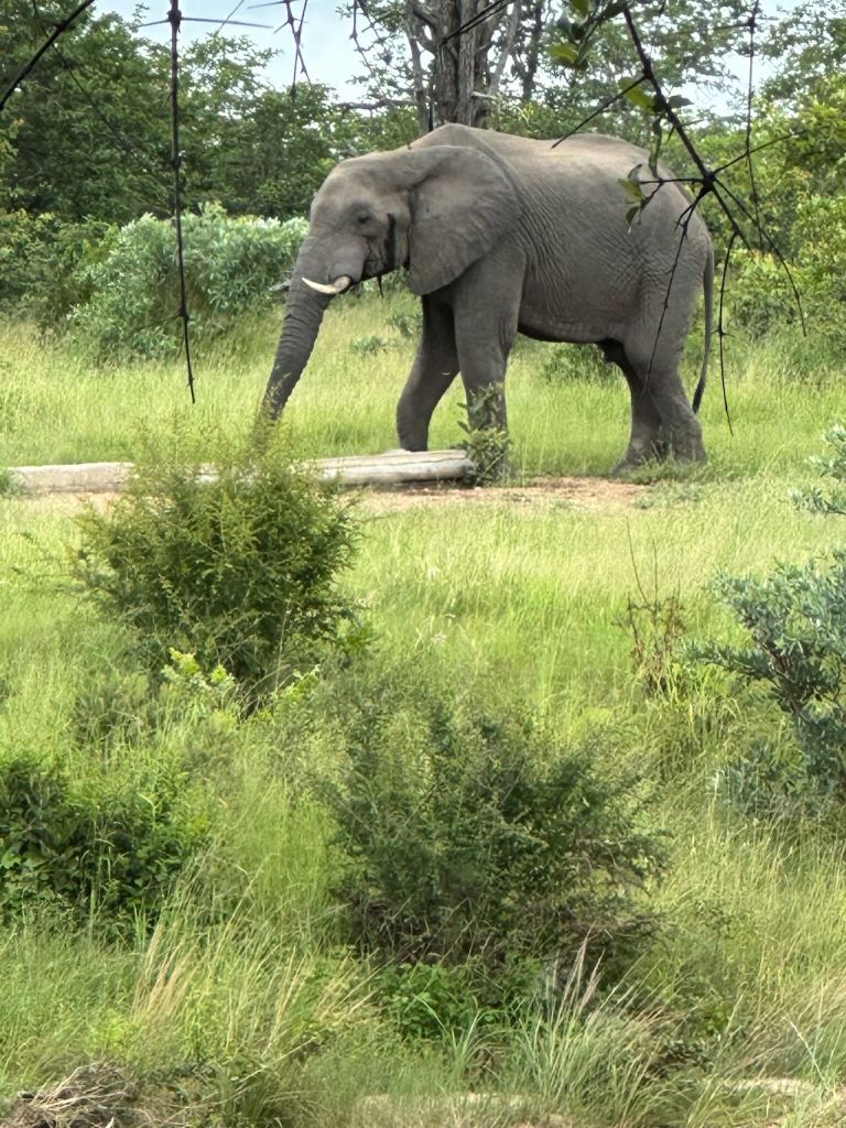 Sometimes we’d see wildlife at the watering hole just across the creekbed from the lodge – like elephants, giraffes, or hyenas.