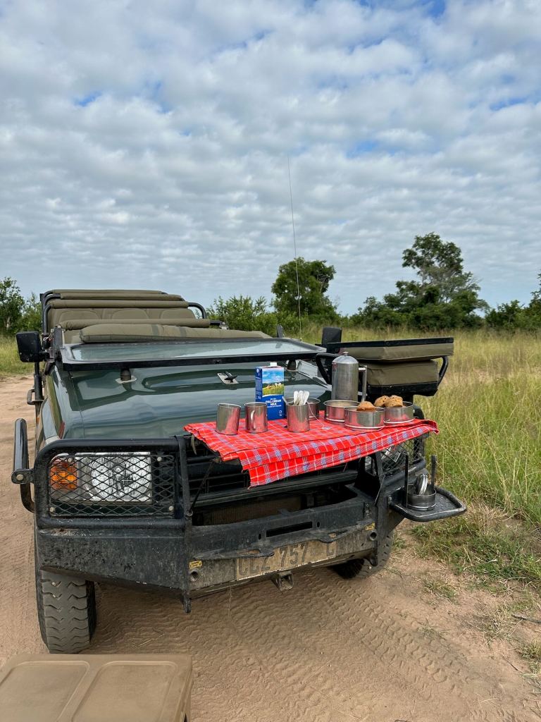 We’d usually stop around 7:30 for a coffee and muffins. It was a nice start to the day and great way to stretch our legs after bouncing around in the Land Cruiser for a couple of hours.