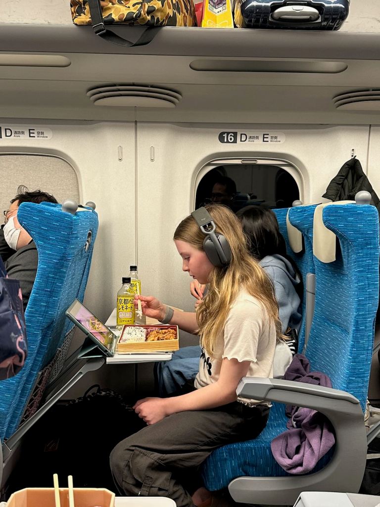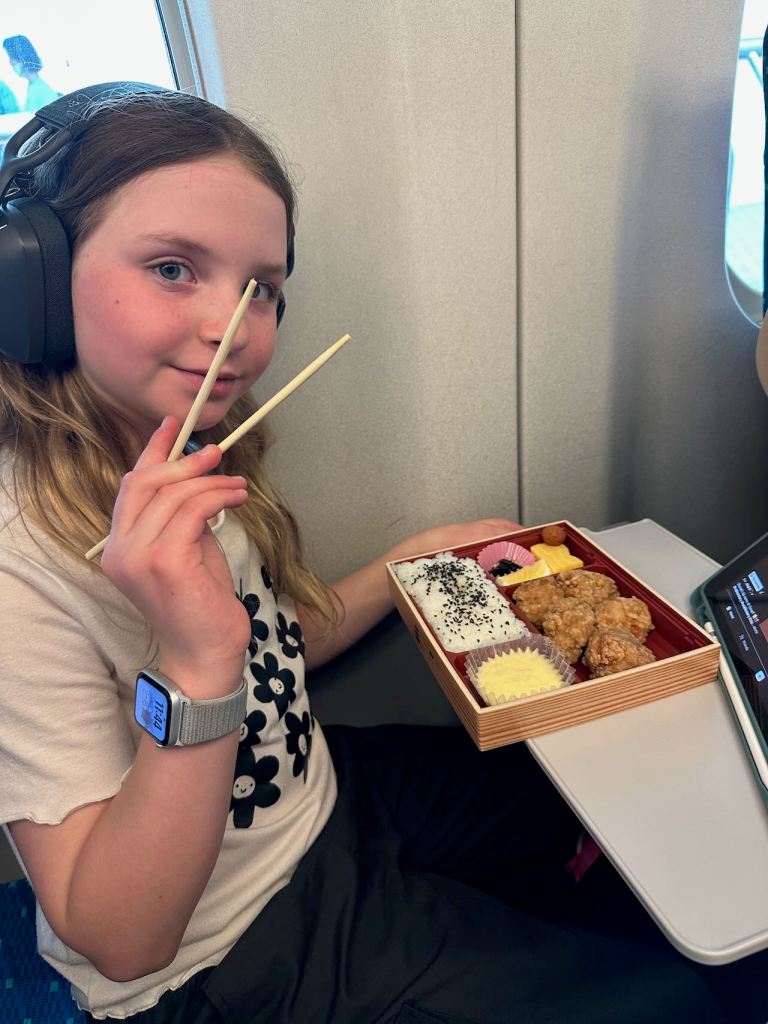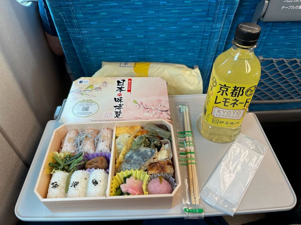 This time, our travel would be over lunch so we each picked up one of the famous Shinkansen bent boxes before boarding. There were about 12 varieties to pick from and everyone loved their choice!