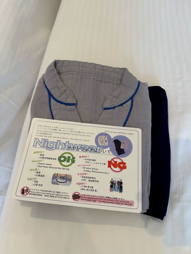 I’d forgotten how hotels in Japan provide so many amenities that you need for your night – toothbrushes, razors, etc – and even jammies.
