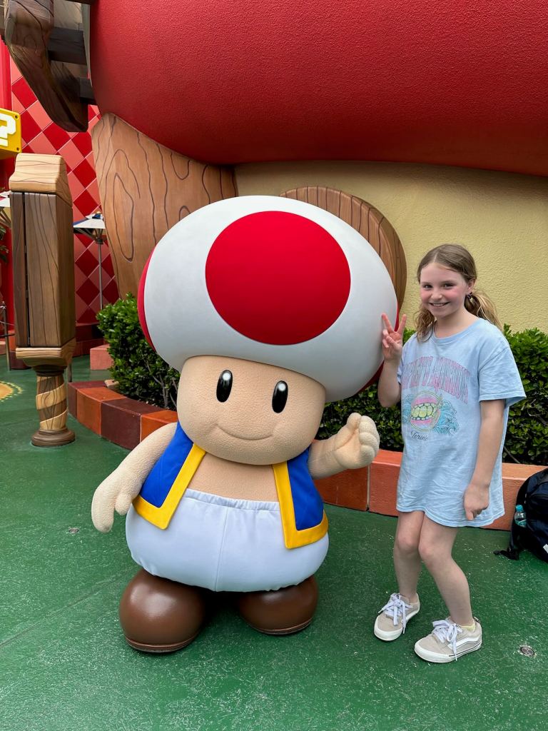 After that, we spotted Toad giving high fives and handshakes out in the courtyard!