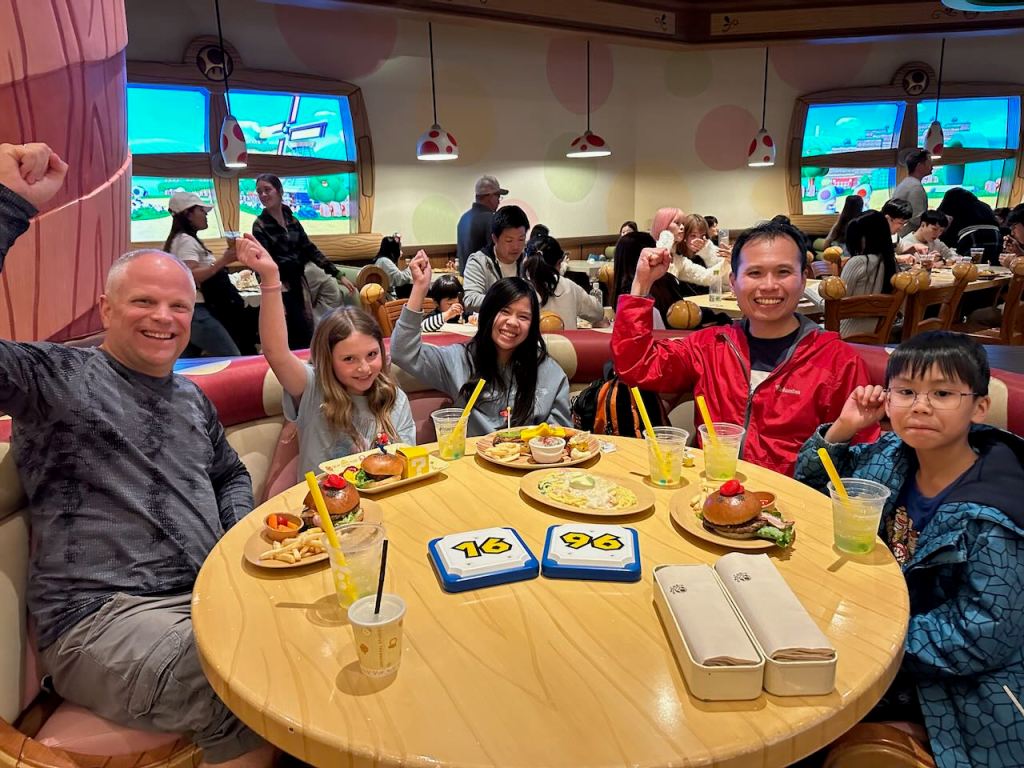 We got a lunch reservation at Kinopio’s Cafe, hosted by Chef Toad. Thankfully the reservation was free and just required some waiting (about an hour and a half) in which time you could roam around. We went on the Yoshi Adventure ride in the meantime and it was pretty cute to see these real moving Pokeys!