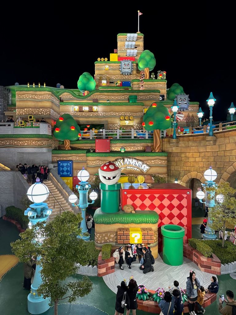 Super Nintendo World looked so cool all lit up.