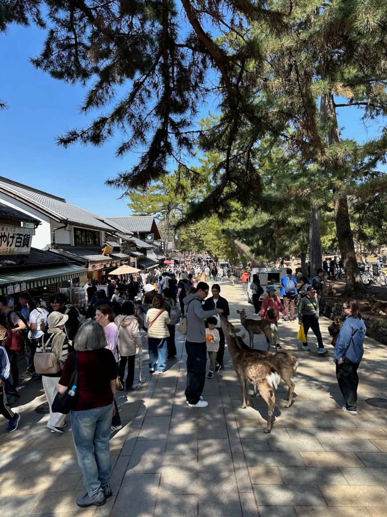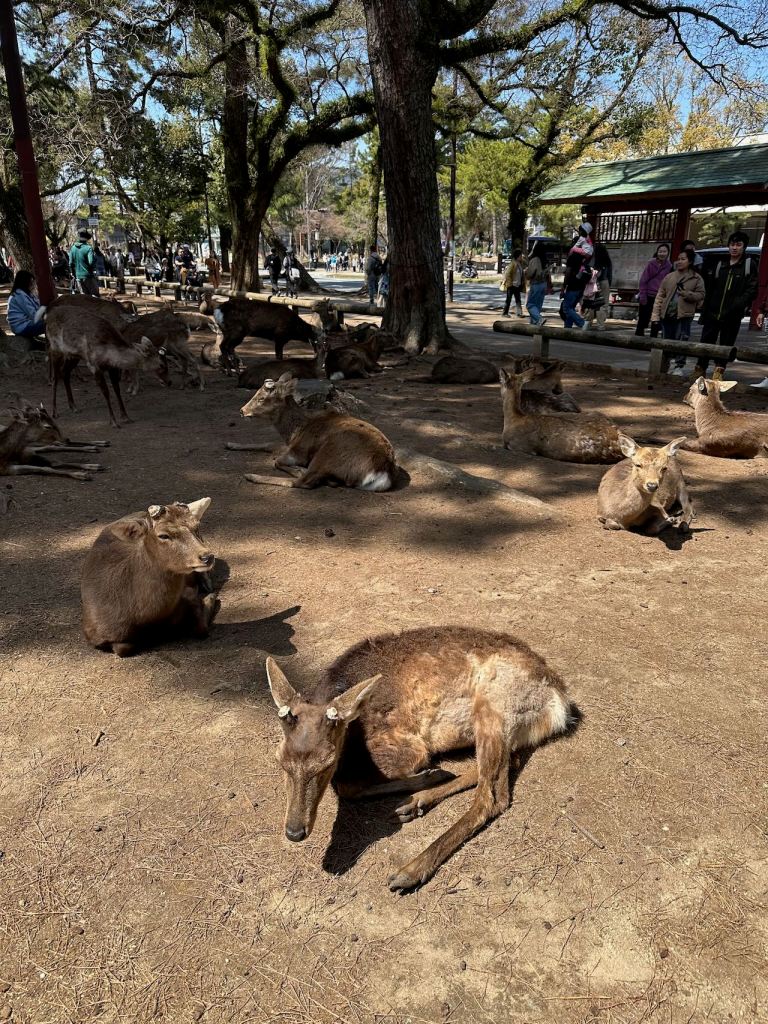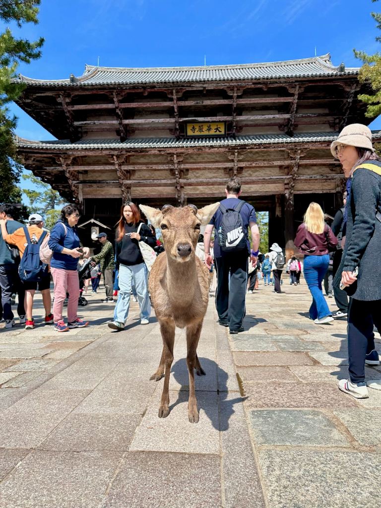 The next day, we ventured over to the city of Nara, a bit east of Osaka. Nara is a historical capital of Japan and is famous for its bowing deer in Nara Park, a huge green expanse near the city centre.